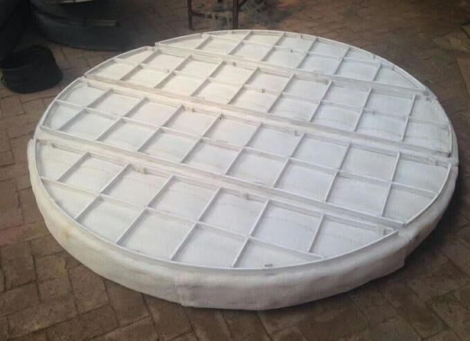 絲網(wǎng)除沫器主要是由絲網(wǎng)、絲網(wǎng)格柵組成絲網(wǎng)塊和固定絲網(wǎng)塊的支承裝置構(gòu)成,絲網(wǎng)為各種材質(zhì)的氣液過濾網(wǎng),氣液過濾網(wǎng)是由金屬絲或非金屬絲組成。氣液過濾網(wǎng)的非金屬絲由多股非金屬纖維捻制而成,亦可為單股非金屬絲。該絲網(wǎng)除沫器不但能濾除懸浮于氣流中的較大液沫,而且能濾除較小和微小液沫,廣泛應(yīng)用于化工、石油、塔器制造、壓力容器等行業(yè)中的氣液分離裝置中。