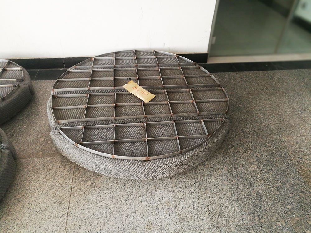 絲網(wǎng)除沫器主要是由絲網(wǎng)、絲網(wǎng)格柵組成絲網(wǎng)塊和固定絲網(wǎng)塊的支承裝置構(gòu)成,絲網(wǎng)為各種材質(zhì)的氣液過(guò)濾網(wǎng),氣液過(guò)濾網(wǎng)是由金屬絲或非金屬絲組成。氣液過(guò)濾網(wǎng)的非金屬絲由多股非金屬纖維捻制而成,亦可為單股非金屬絲。該絲網(wǎng)除沫器不但能濾除懸浮于氣流中的較大液沫,而且能濾除較小和微小液沫,廣泛應(yīng)用于化工、石油、塔器制造、壓力容器等行業(yè)中的氣液分離裝置中。